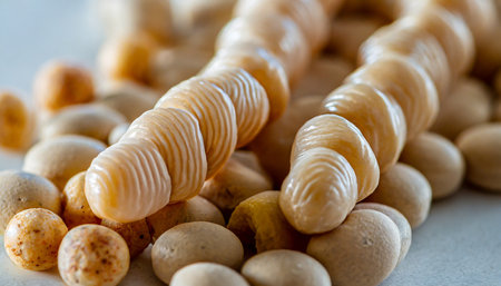 Textured vegetable protein on a black background.