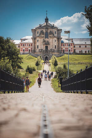 Kuks, Czech Republic - August 08, 2020: State hospital Kuks was founded in 18th century. Beautiful baroque hospital is public tourist attraction in Kuks, Czech republic.