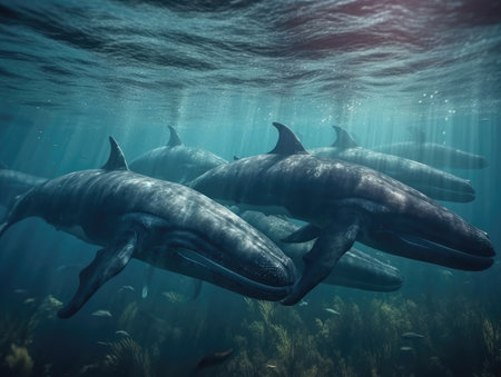 Group of whales in natural habitat (generative AI)