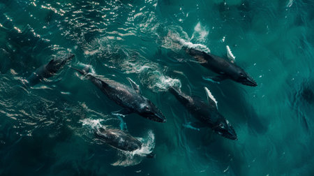 Humpback whales swimming in the ocean. Aerial view of a group of humpback whales.ai generated
