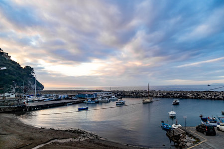 Cetara, Coast of Amalfi. Italy. Sunrise Overvierw of harbor pier. Landscape