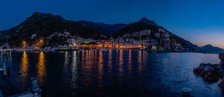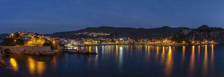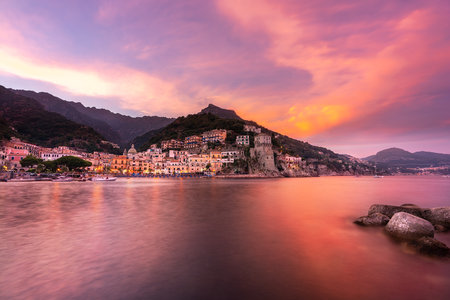 Sunset panoramic view of Cetara town, Amalfi coast, Italy