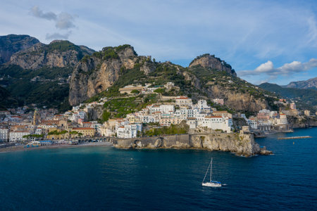 Amalfi, Italy - 1 November, 2019: Amalfi cityscape on coast of mediterranean sea, travel