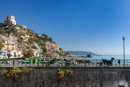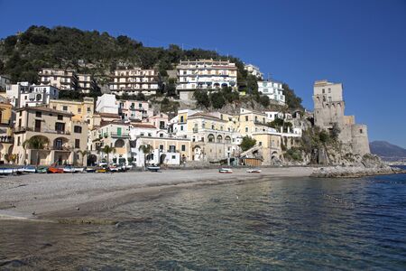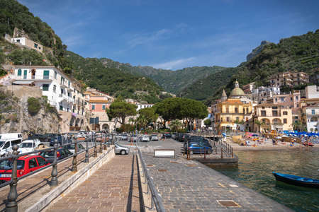 Cetara, Italy - June 13, 2020, Cetara cityscape on coast of Amalfi of mediterranean sea in Italy