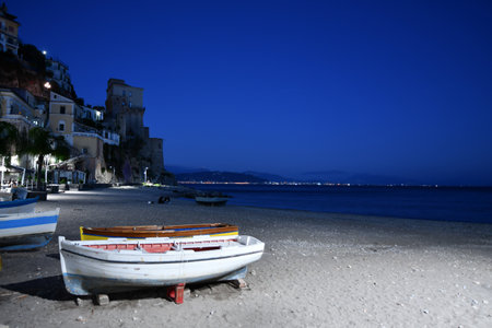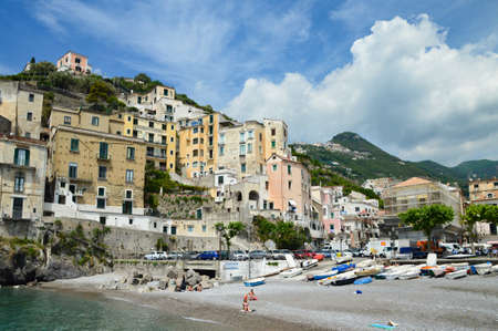 sunny beach at Cetara, on Amalfi coast, Italy