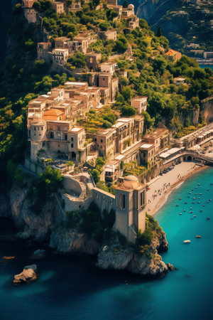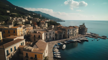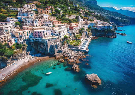 Generative AI : Aerial view of Marechiaro a small harbour along the coastline in Naples Campania Italy