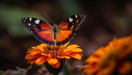 Vibrant butterfly wing in focus, pollinating single flower in nature generated by artificial intelligence