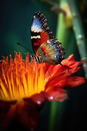 Vibrant butterfly on delicate flower