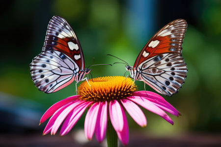 two butterflies sitting on the same flower, created with generative ai