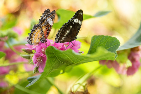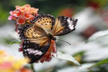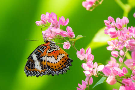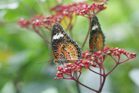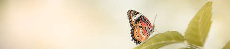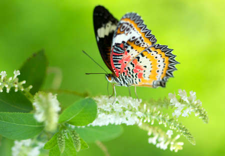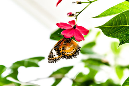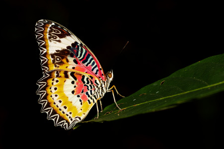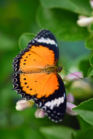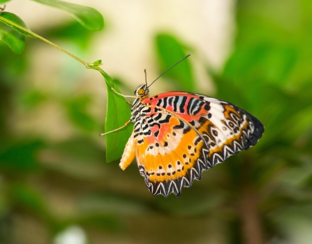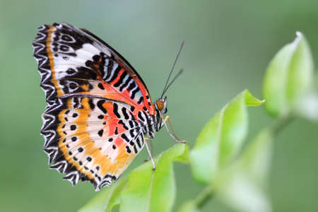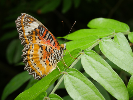Image of Leopard lacewing Butterfly on green leaves. Insect Animal.