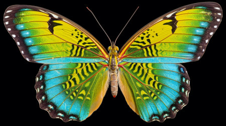 Stunning close-up of a vibrant butterfly showcasing intricate wing patterns in a variety of colors. Ideal for nature enthusiasts and artistic projects.