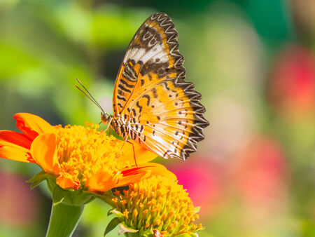 red yellow butterfly on flower of Thailand background