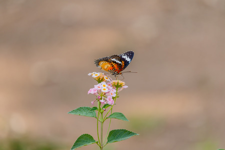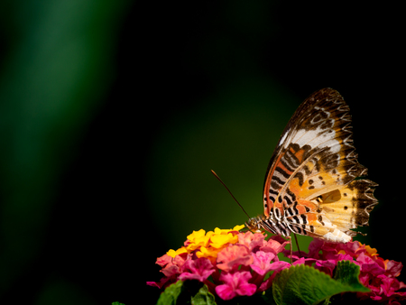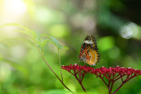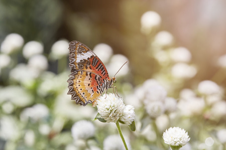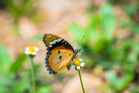 The beautiful butterfly on flower is eatting flower in nature garden