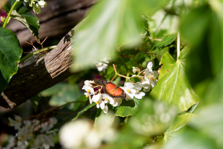 Orange and black butterfly on white flowers