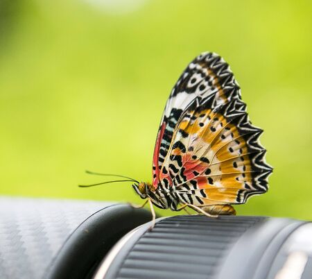 Beautiful butterfly on a camera lens