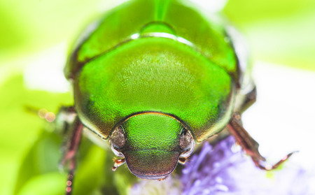 Scarab beetle or Anomala grandis green little bug insect macro
