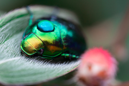 A macro shot of the exotic colourful beetle