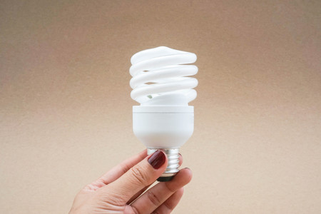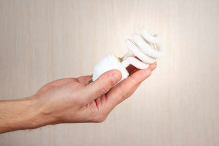 Hand holding energy saving CF light bulb on