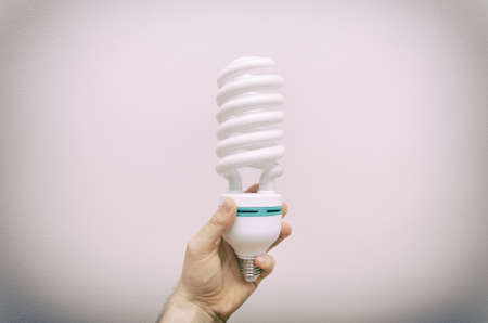 Human hand holding cfl lightbulb