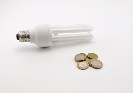 coins on the background of energy saving lamps