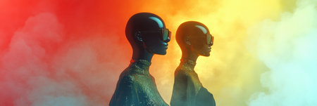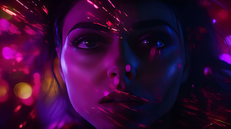 People in an atmosphere of cosmic neon light, created with the help of generative AI technology.