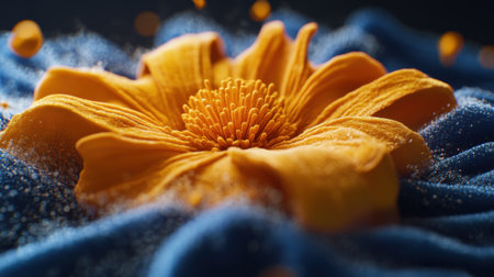 A stunning close-up view of an orange flower petal resting on a soft textured fabric, showcasing vibrant colors and delicate details, perfect for nature lovers.