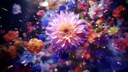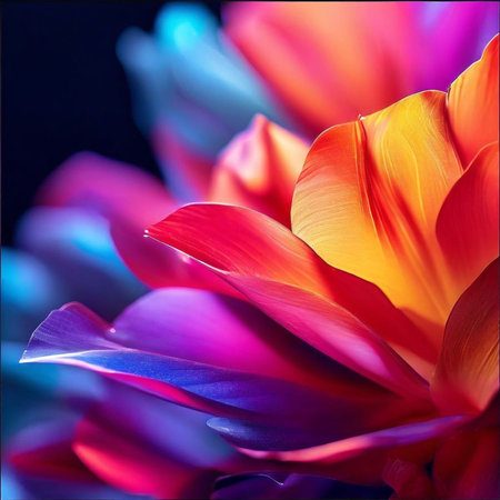 AI Generated. Beautiful abstract floral background in bright colors with smooth transitions on a dark background