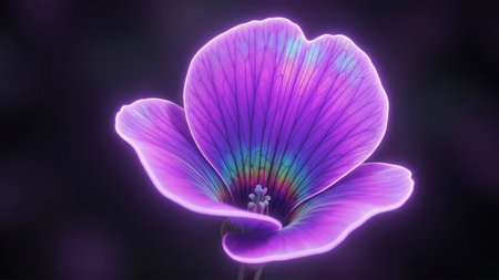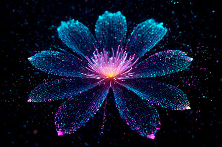 A holographic Flower with particles on a dark background, made up of many particles. Generative AI.