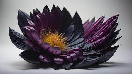 Purple and black lotus flower on white background with copy space. generative ai