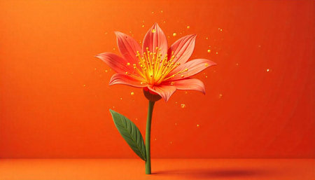 Minimalist Orange Flower On Light Purple Gradient Background