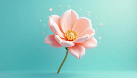 Elegant pink flower with green stem on turquoise background