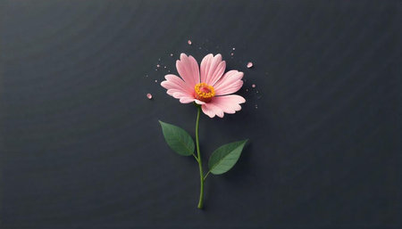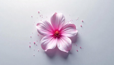 Elegant pink flower with minimalist background and small spheres