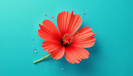 Vibrant Red Flower Blossom on a Turquoise Background