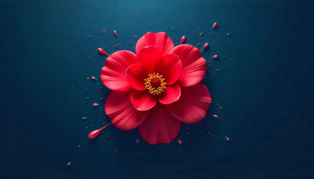 Vivid red flower with paint splatter on cyan backdrop