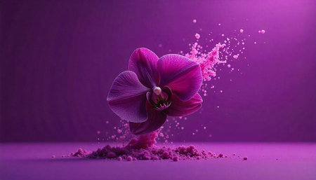 Elegant purple orchid with dynamic dust and background