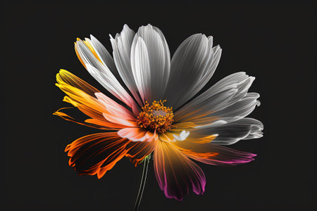 Creative Colorful Design of a Cosmos Flower. The Cosmos flower is a hardy annual flower with delicate petals in shades of pink, purple, white, and yellow.