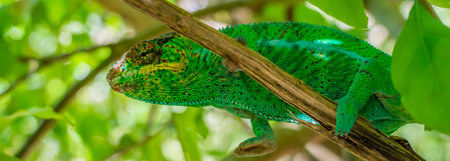 Macro shots, Beautiful nature scene green chameleon
