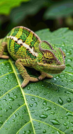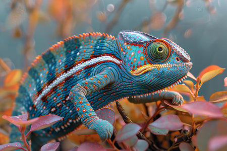 A vibrant chameleon with colorful scales symbolizing adaptability and transformation, captured crisp detail and studio quality