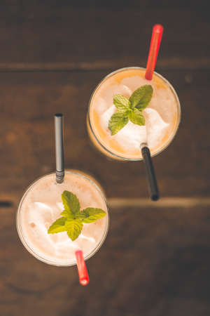 Close up of whipped cream on drink glass