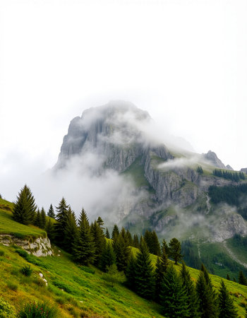 Foggy mountain landscape in the Dolomites, Italy.