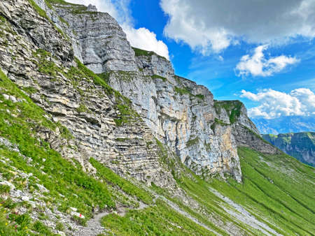 Alpine peak Altenalp in the Alpstein mountain range - Canton of Appenzell Innerrhoden AI , Switzerland. cloudy weather