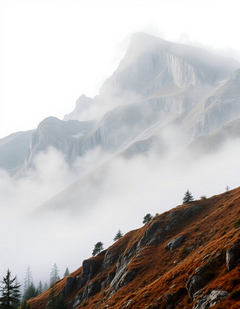 Mountains in the fog, Dolomites, South Tyrol, Italy