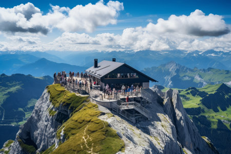 Captivating Mountain Panorama: Majestic Views from Peak near Mount Pilatus Visitor Center, Switzerland - July 2015