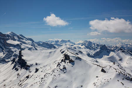 amazing snow covered peaks in the Swiss alps Jungfrau region from Schilthorn