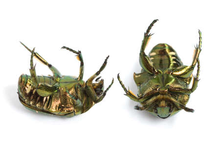 Dead beetle insect, 3 insect closeup shot on isolated white background