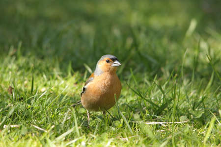 Chaffinch (Fringilla coelebs) on the ground in the park. Birds