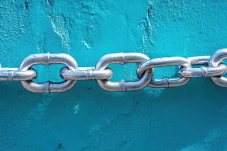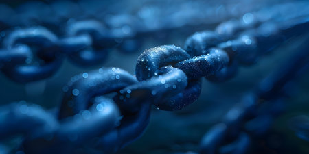 Interlocked Metal Chain Links Symbolizing Strength, Security, and Connection in Dark Blue Tones