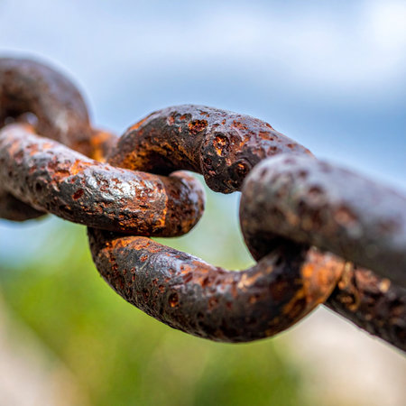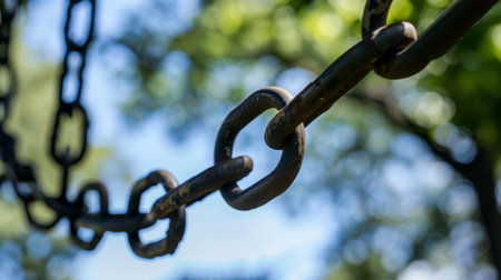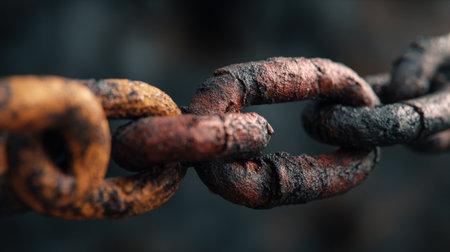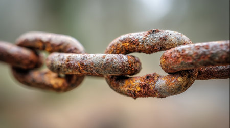 Rusty Metallic Chain Representing Strength and Security, Linking Generations Through Time