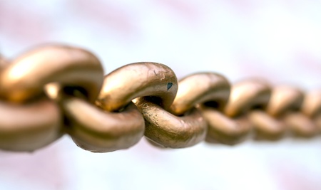 Close up view of rusted chain links glistening in soft light showing natures strength and passage of time.