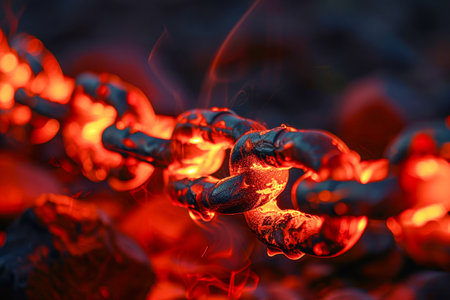A heavy iron chain glows with intense, residual heat, its links tested to their absolute limit.